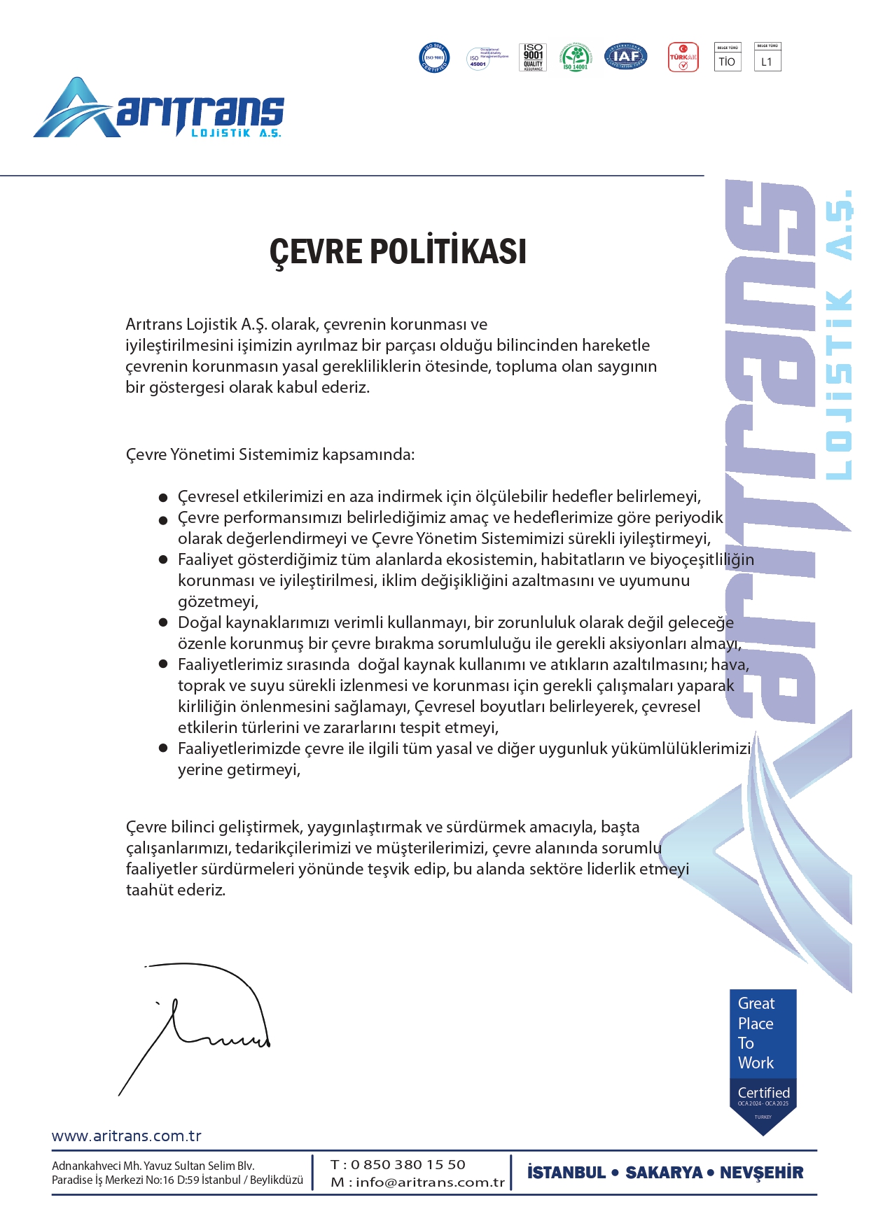 | Ticaret Ünvanı | ARITRANS LOJİSTİK A.Ş. |